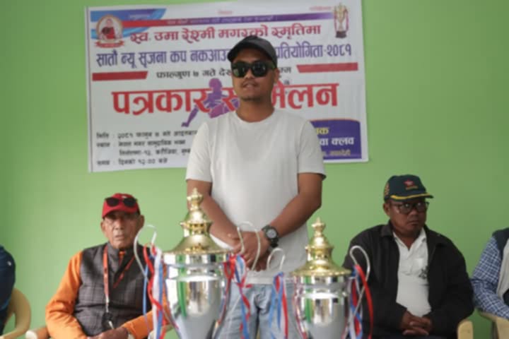 रुपन्देहीको तिलोत्तमा १३ करौजियामा यही फागुन ७ गते देखि ७ औं न्यु सृजना कप नकआउट फुटबल प्रतियोगिता २०८१ हुने भएको छ । तिलोत्तमा नगरपालिका वडा नं १३ करौजिया निवासी स्व. उमा रेश्मी मगर को स्मृतिमा ७ औं न्यु सृजना कप नकआउट फुटबल प्रतियोगिता २०८१ हुन गइहरको हो । तिलोत्तमा १३ करौजियमा पत्रकार सम्मेलन आयोजना गरी प्रतियोगीताको सबै तयारी पुरा भएको क्लब का अध्यक्ष सोबित थापा दर्लामीले बताउनु भयो ।